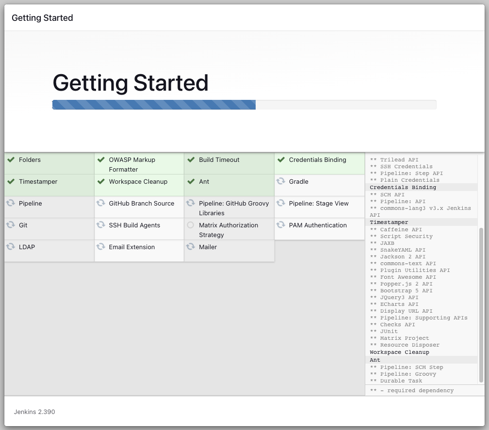 Install suggested plugins / Select plugins to install 중 선택 (강의에서는 Install suggested plugins로 설치)