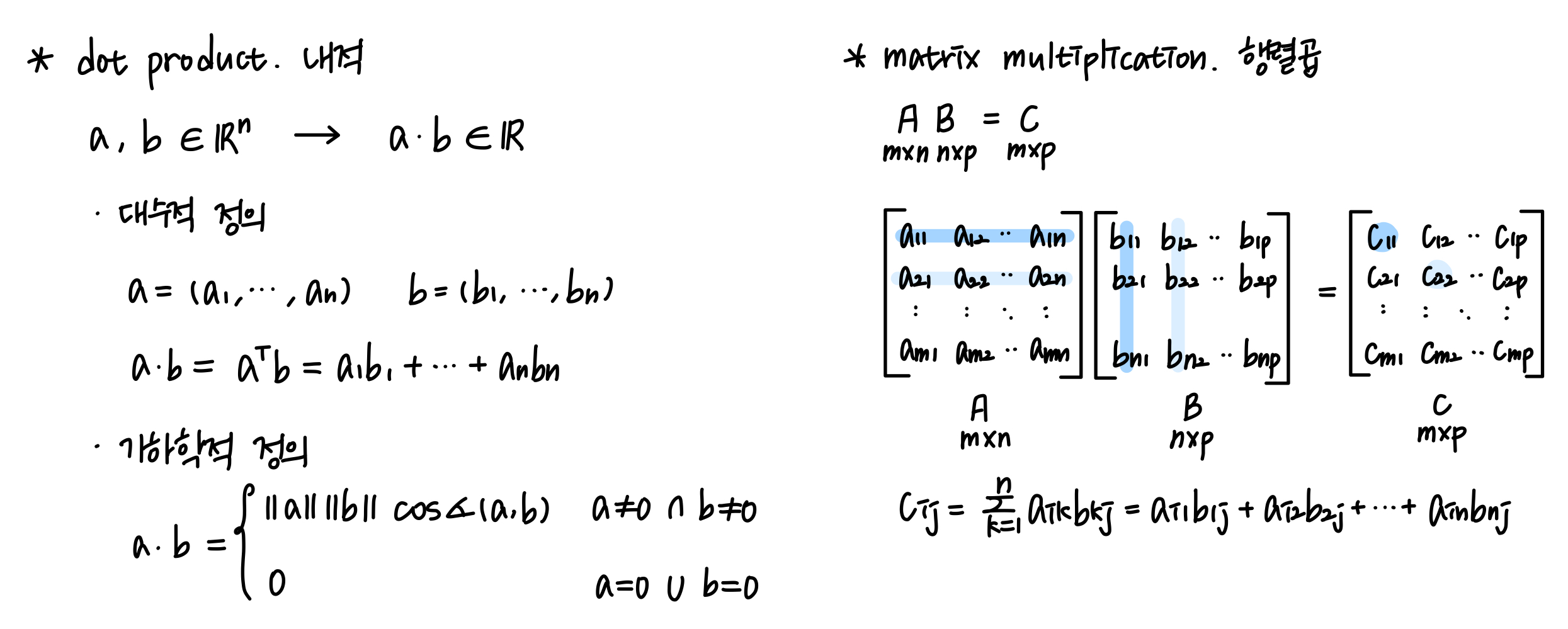 - 두 벡터의 내적을 계산한 결과이므로 스칼라값을 return