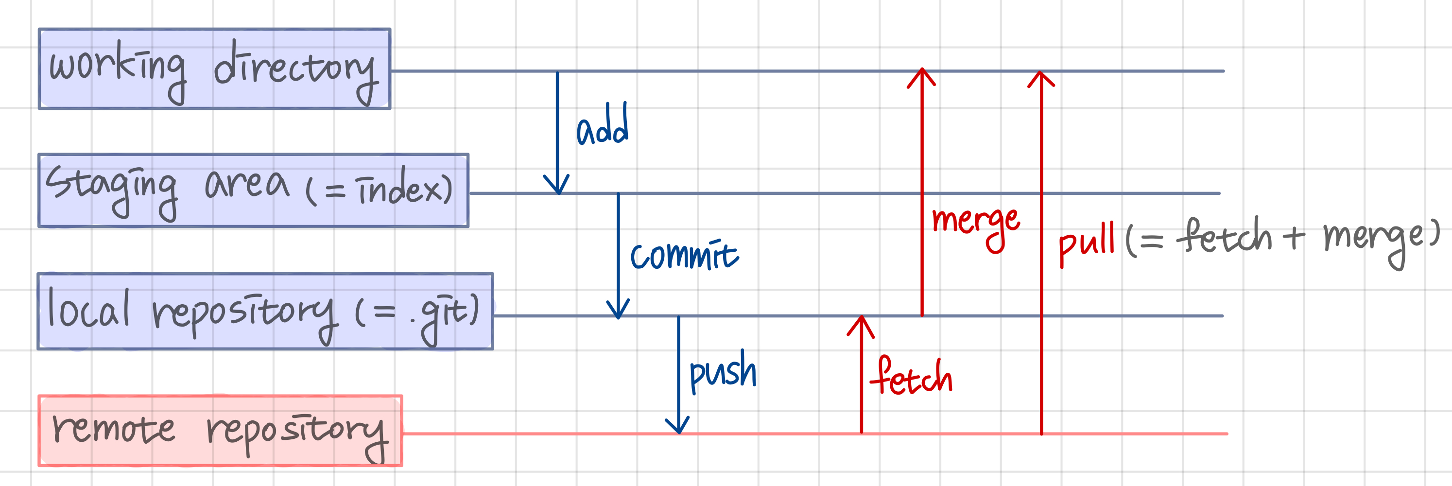 기본적으로 local repository에서 작업을 수행 → 그 결과를 remote repository에 저장
